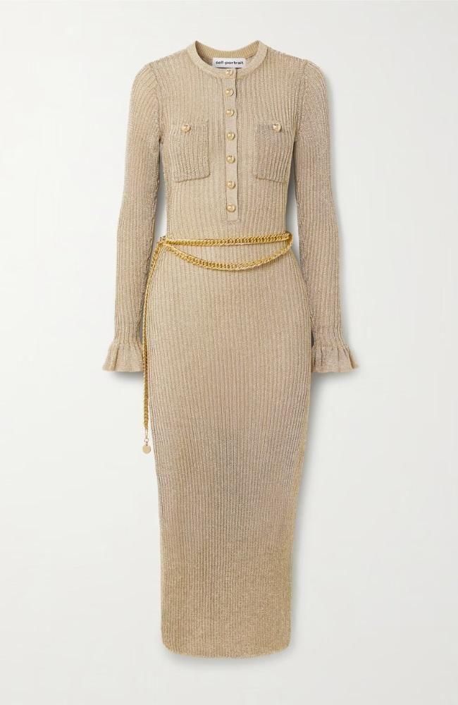 シックに大人可愛い印象になれるゴールドカラーのニットドレス。
