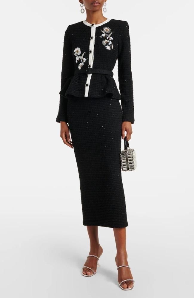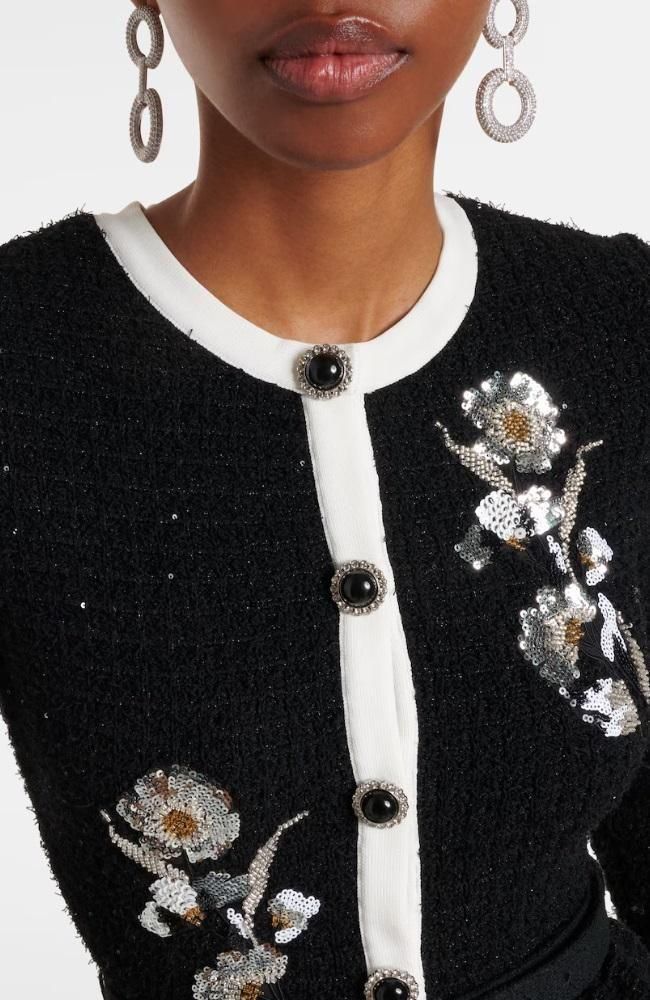 ツイード地そのものにも繊細なスパンコールが織り込まれ、